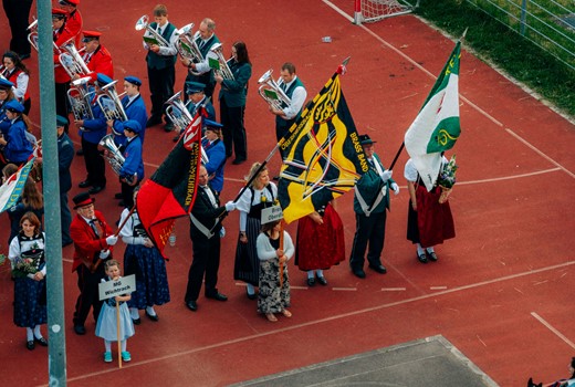 Marschmusikparade und Vortrag im Festzelt
