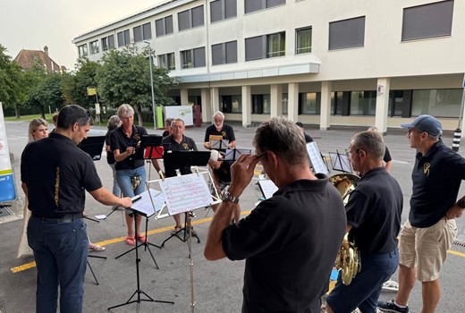 Am Donnerstag 14. und 21. August durfte die Brass Band Oberdiessbach die Bewohnerinnen und Bewohner des Altersheimes an der Krankenhausstrasse sowie im Sonnrain mit flotter Blasmusik unterhalten.